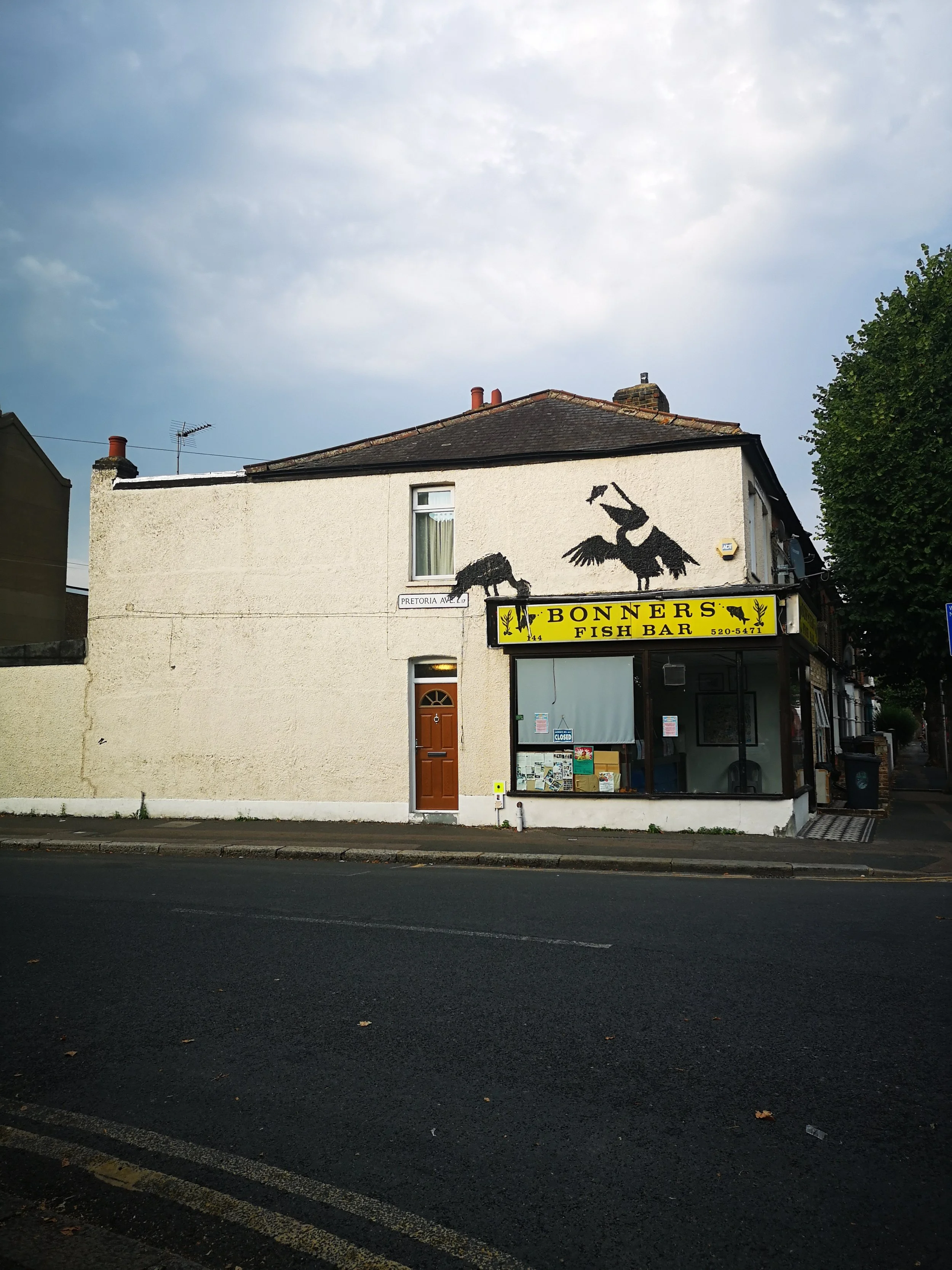 One in the City of London, Ludgate Hill, where the police box was painted into aquarium and one in Walthamstow where hungry pelicans feed on the restaurant fish.